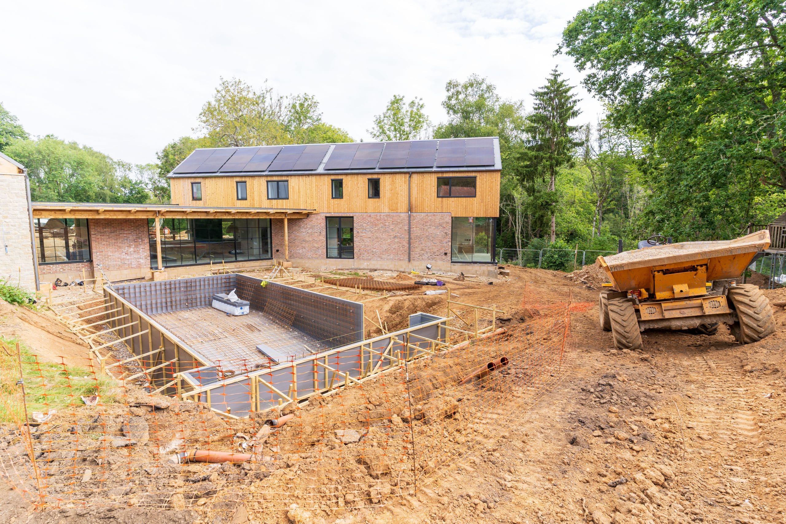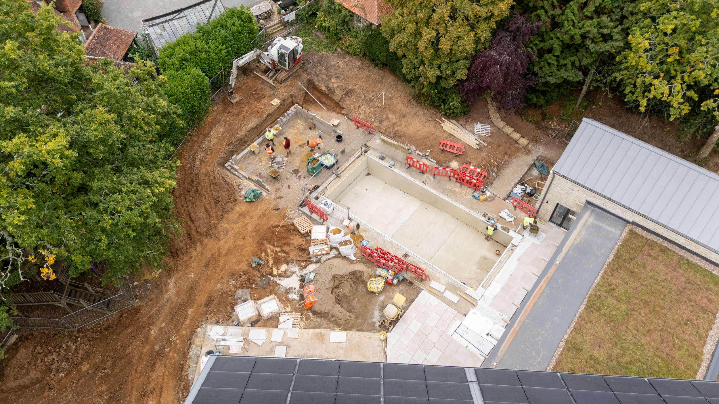 Swimming Pool Paving: Paving around the pool area to complete the hard landscaping layout.