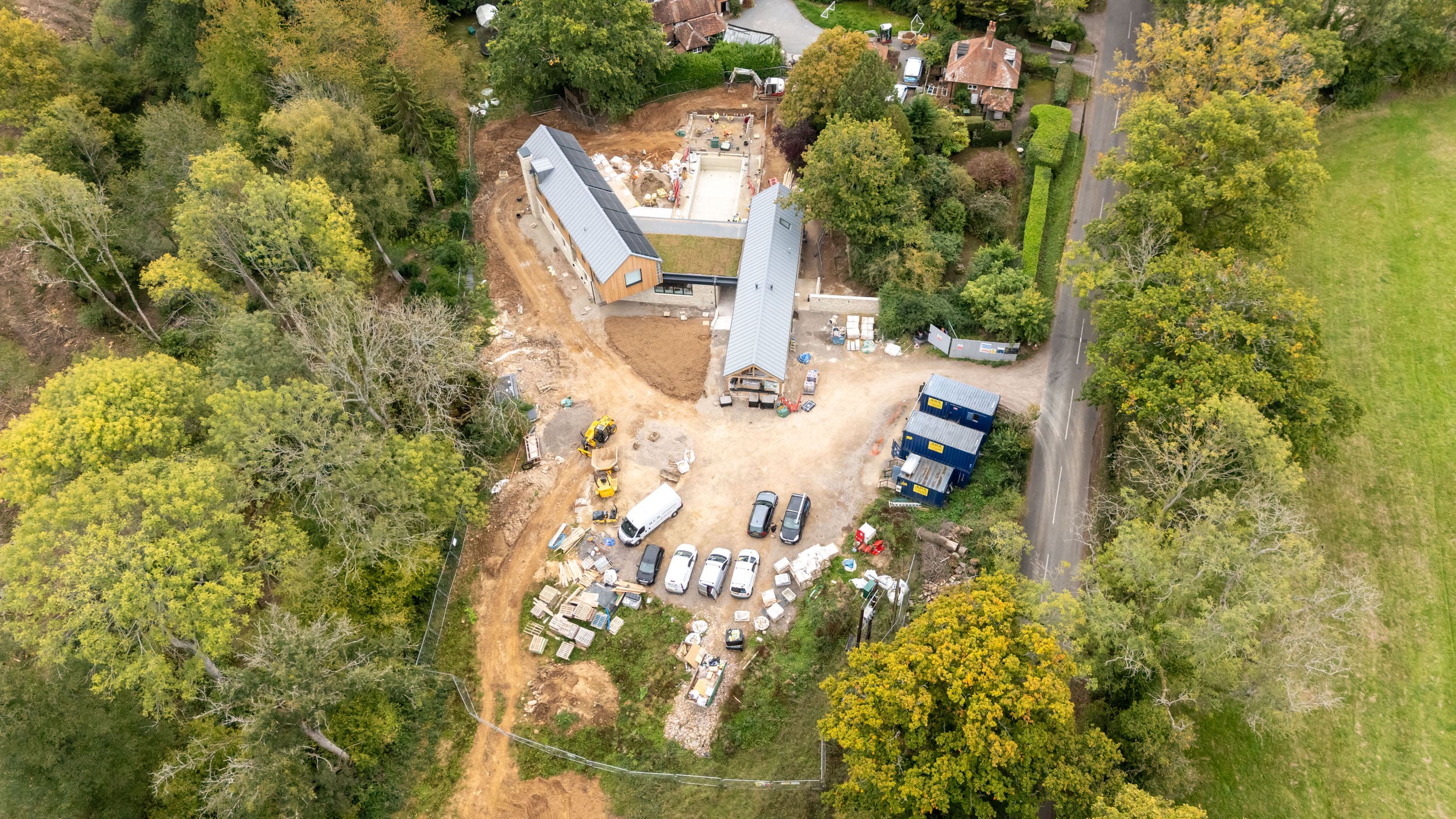 Full external works project including RC groundwork, traditional stonework, paving, resin surfaces, and drainage installation.