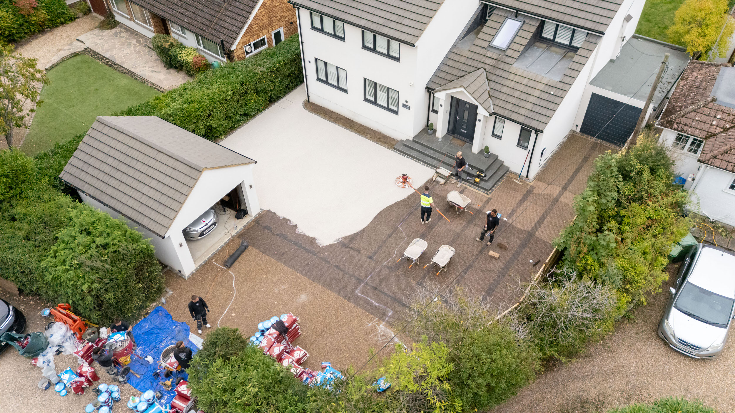 Resin Bound Driveway: Installation of Vuba resin system, including both binder and surface courses, for a durable, low-maintenance finish.