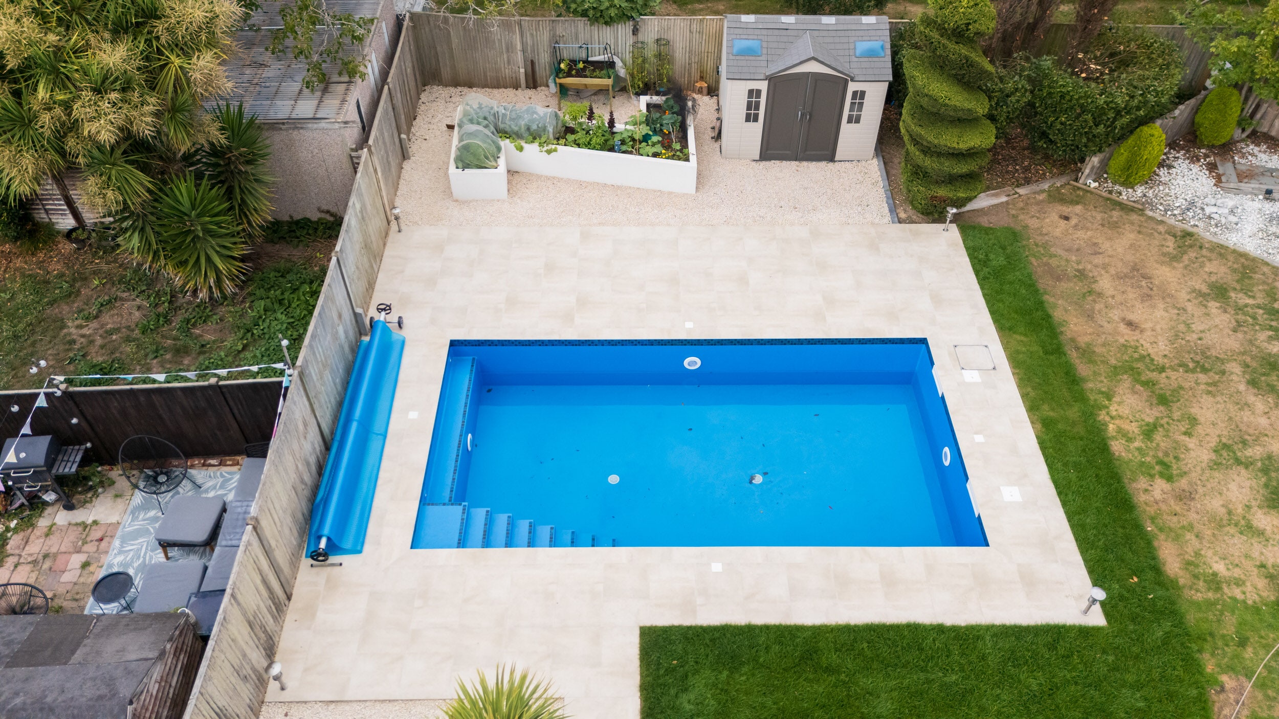 • Structurally sound pool build with reinforced concrete foundation system.